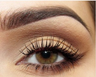 Wracamy na górną powiekę. Znowu ten sam brązowy cień i rysujemy kreskę wzdłuż linie rzęs ciągnąc pędzel delikatnie ku górze i podobnie, jak przy tej na dolnej powiece, wyciągamy ją delikatnie poza kącik oka. Gdybyśmy baaardzo przedłużyły tą kreską to zbiegnie się z linią brwi – to w celu określenia kąta i kierunku kreski nad górnymi rzęsami – nigdy nie róbcie tak długich kresek 😉